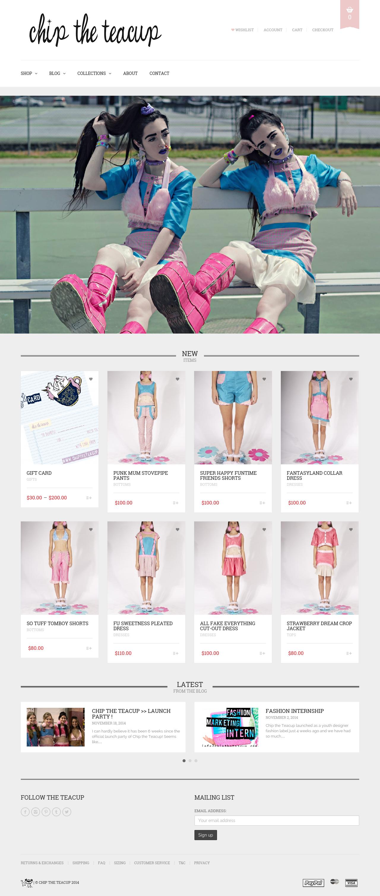 Chip The Teacup was an independent fashion label based in Lismore, NSW. They needed an online store with a blog-like functionality and user experience that could match the aesthetics of their existing branding.