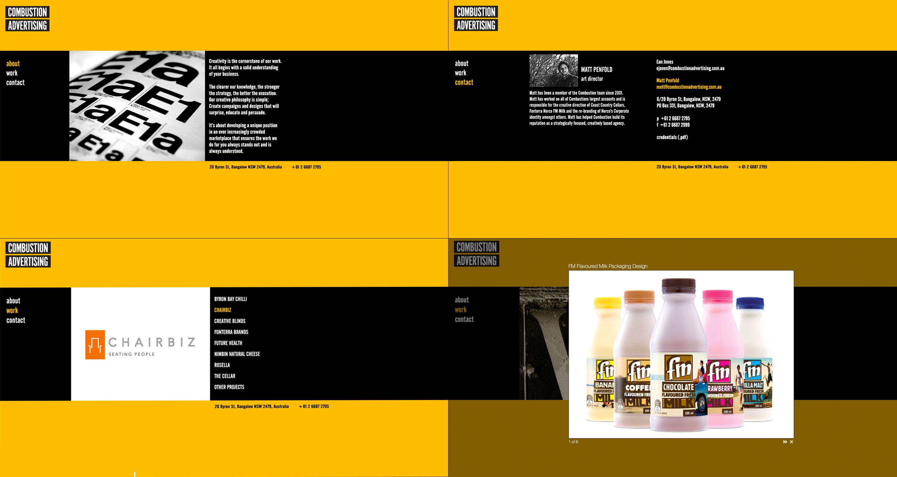 Combustion Advertising is an ad agency based on the North Coast of NSW. As one of the top ad agencies in the area, I am fortunate to have been given the opportunity to do some professional placement there. My task at the time was to create a new website design for the agency that integrated with their new branding.