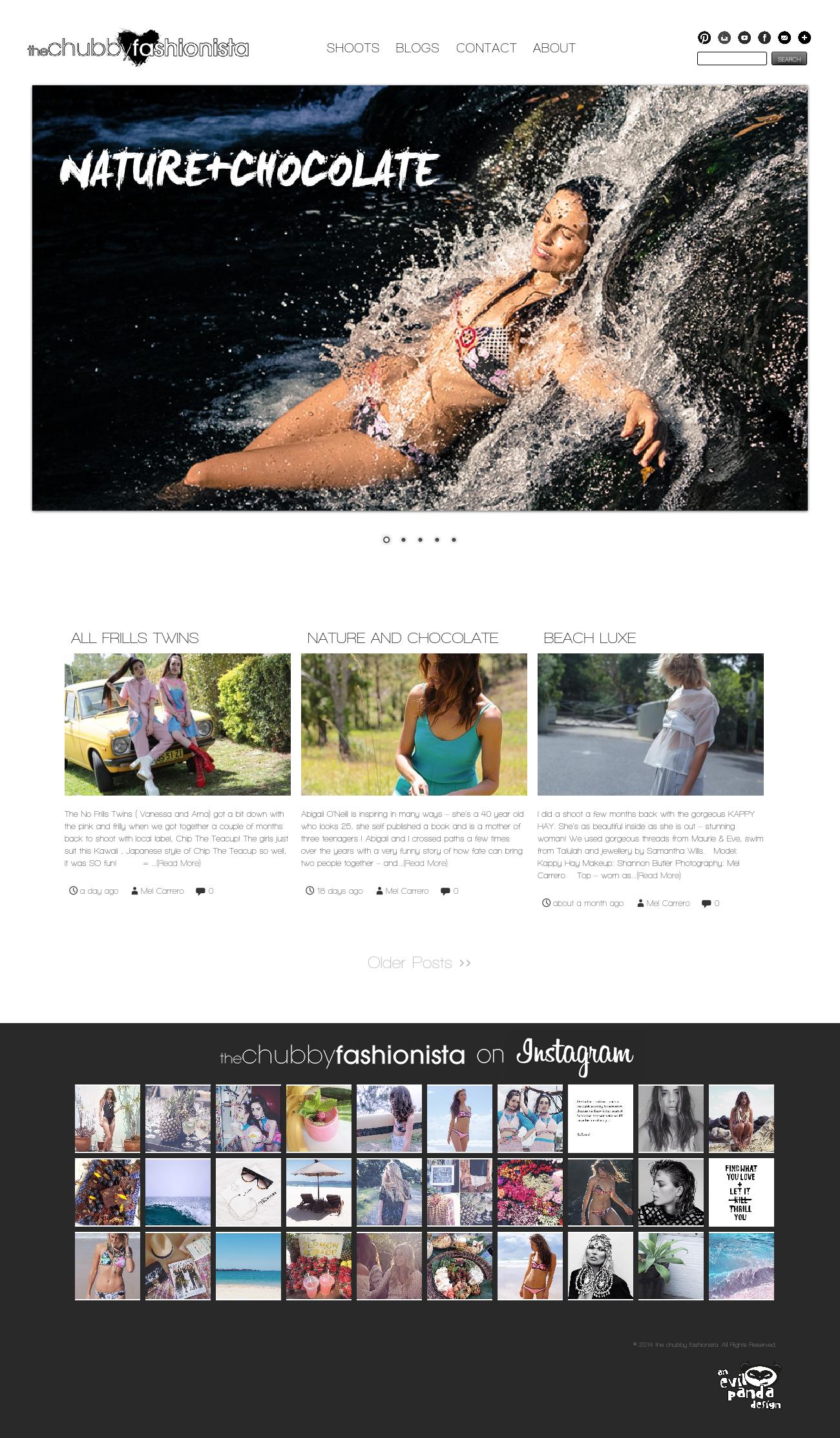Mel Carrero is a stylist and photographer based on the North Coast of NSW and ‘The Chubby Fashionista’ was the name of her increasingly popular fashion blog at the time. Mel originally hired me to do some design work in late 2011 and I have created and worked on several different incarnations of her blog since. At this time she wanted to migrate to a different content management system with a new design that was in a similar vein to some of her fashion-blogging contemporaries.