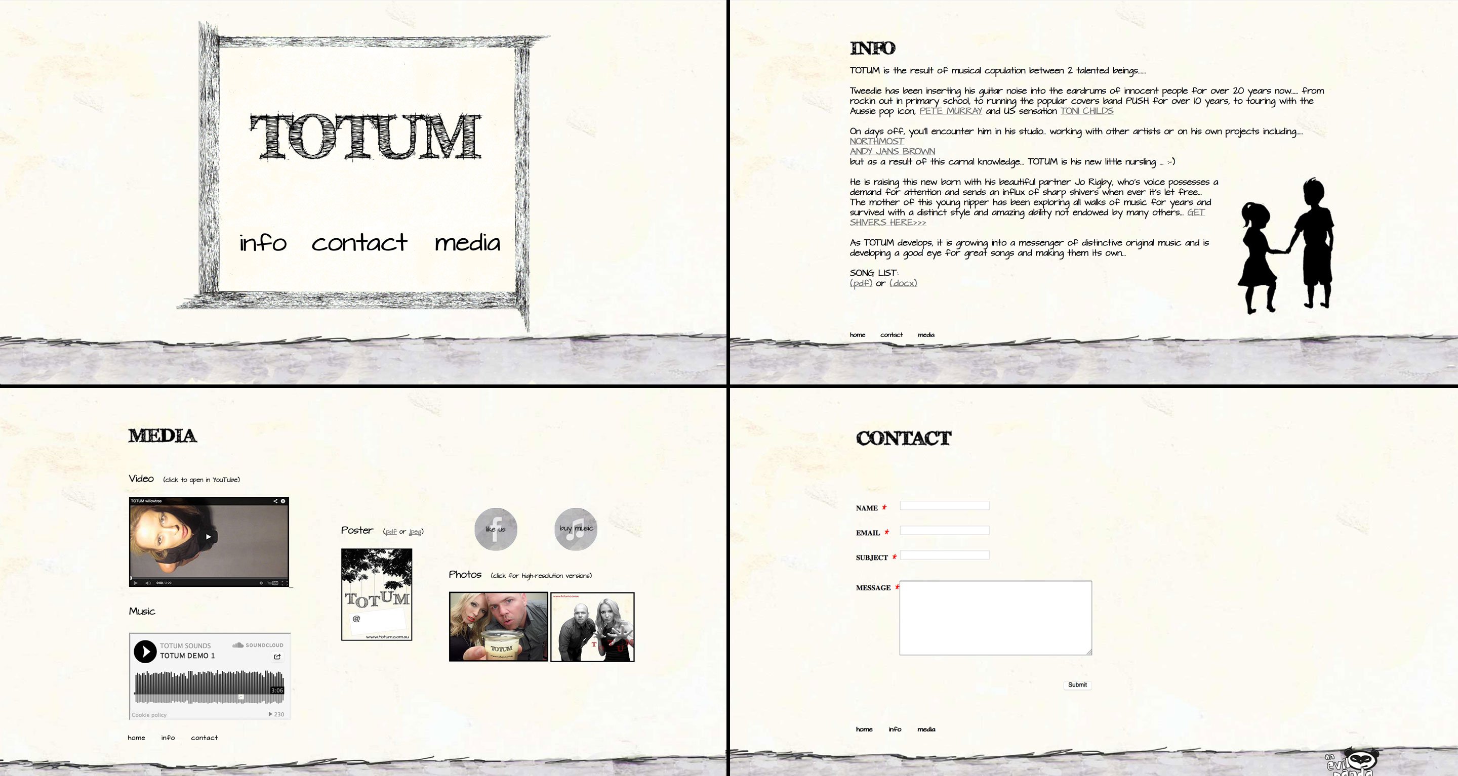 Totum is a musical duo based on the North Coast of NSW. They had their own artwork, typography and concept for a website together but needed someone to translate their ideas to the web.